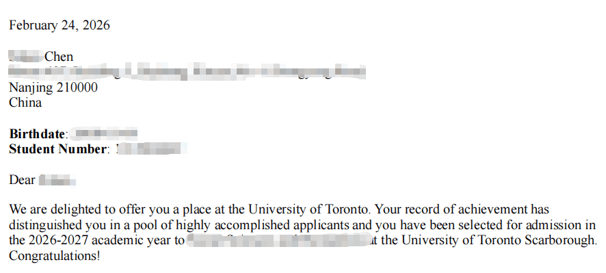 Class of 2026 Admission News|Congratulations to Student Yang on Receiving Offers from the University of Melbourne and UNSW Sydney!