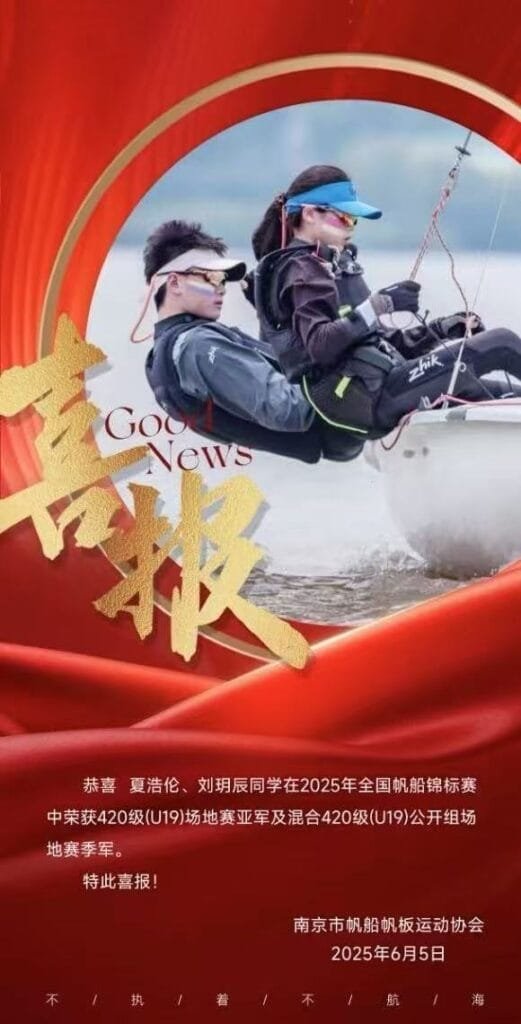 We’re thrilled to announce that XIA Haolun, a student from the International High School Program at Nanjing Hexi Foreign Language School, has achieved remarkable success at the recently concluded 2025 National Sailing Championship! Demonstrating tenacious spirit and exceptional skill, he secured double accolades: