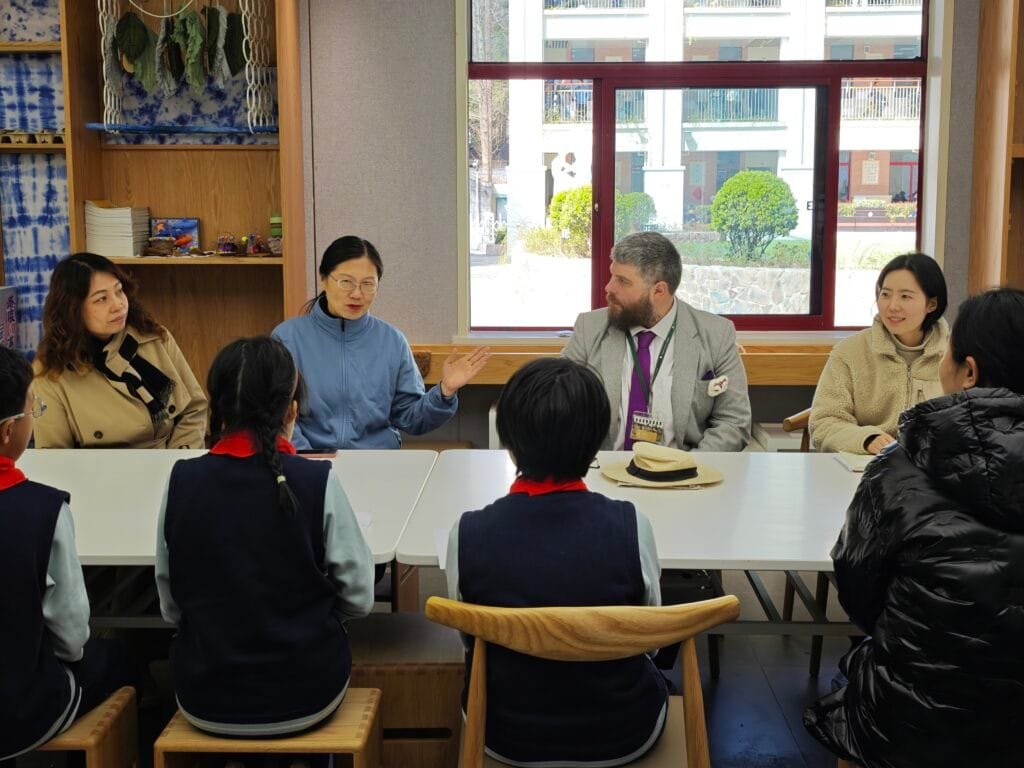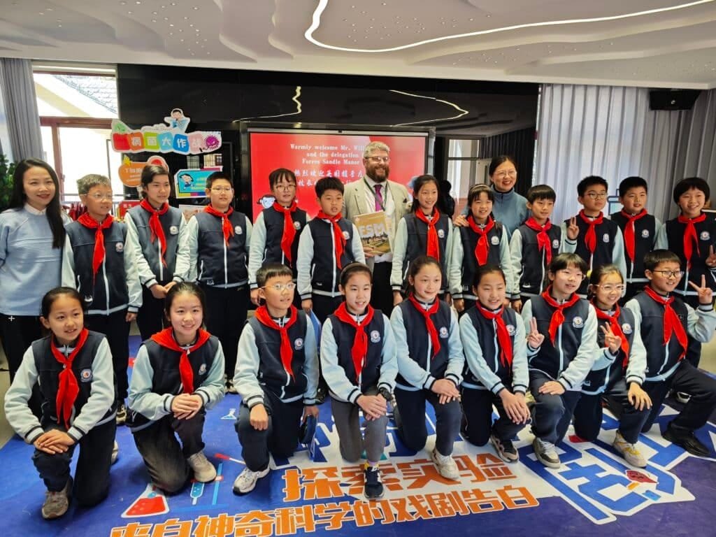 Accompanied by Langyalu Primary School leaders, Principal William Peak and his delegation first toured the campus. The campus, shaded by lush trees and dotted with well-arranged teaching buildings, greeted visitors with students politely offering warm welcomes. Principal Peak then entered a bright classroom to deliver a drama lesson. Through lively performances and interactive activities, he guided students to experience the charm of theater, sparking exceptional enthusiasm in the classroom as pupils immersed themselves in this unique artistic experience.