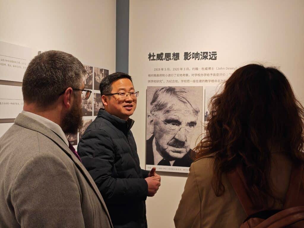 On March 18, 2025, Professor William Peak, Headmaster of Forres Sandle Manor School, led a delegation for a return visit to Nanjing Normal University Primary School. Both parties engaged in in-depth discussions regarding enhanced educational collaboration. In the morning, accompanied by Director Wang, Headmaster Peak and his delegation first visited the Dewey Academy History Museum on campus. Following the tour, Headmaster Peak personally conducted a drama class for students, employing vivid and engaging teaching methods that allowed participants to experience the charm of drama education in a relaxed atmosphere.